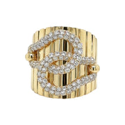 18kt yellow gold micro pave set round brilliant diamond interlocking design wide ring.