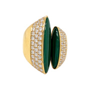 18kt yellow gold micro pave set round brilliant diamond and malachite ring.