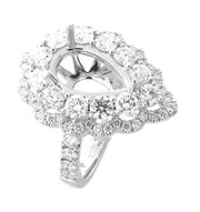 18kt white gold mutual prong and micro prong set round brilliant diamond pear shape double halo semi mount