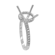 18kt white gold micro prong set round brilliant diamond under-halo semi-mount with 3-D shank.