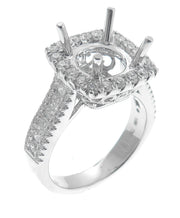 18kt white gold micro prong and channel set round brilliant diamond setting with square halo for round stone