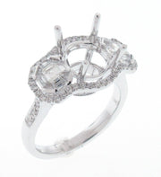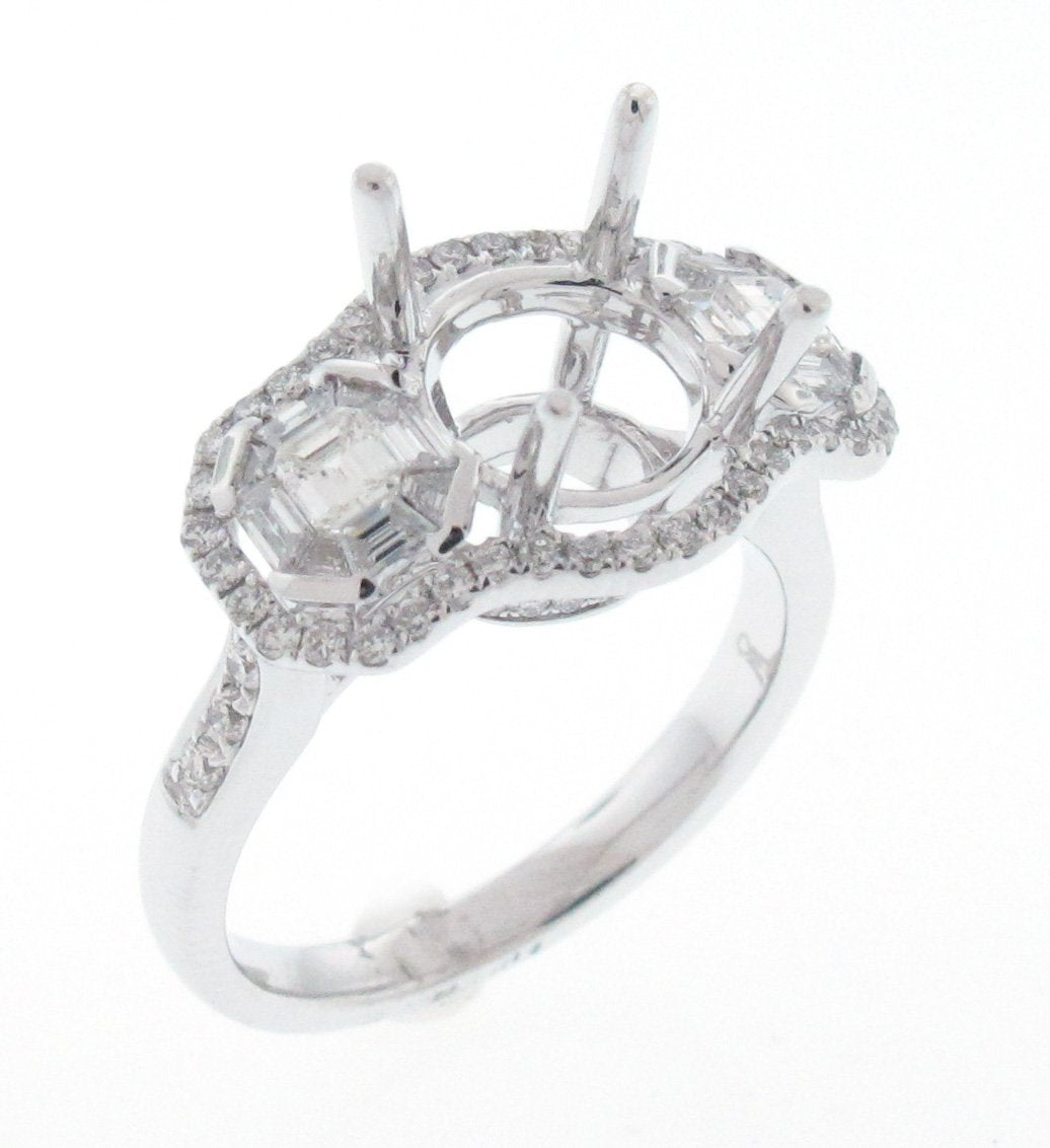 18kt White gold invisible set asscher cut diamond with baguette diamonds and pave set round brilliant diamond setting with halo