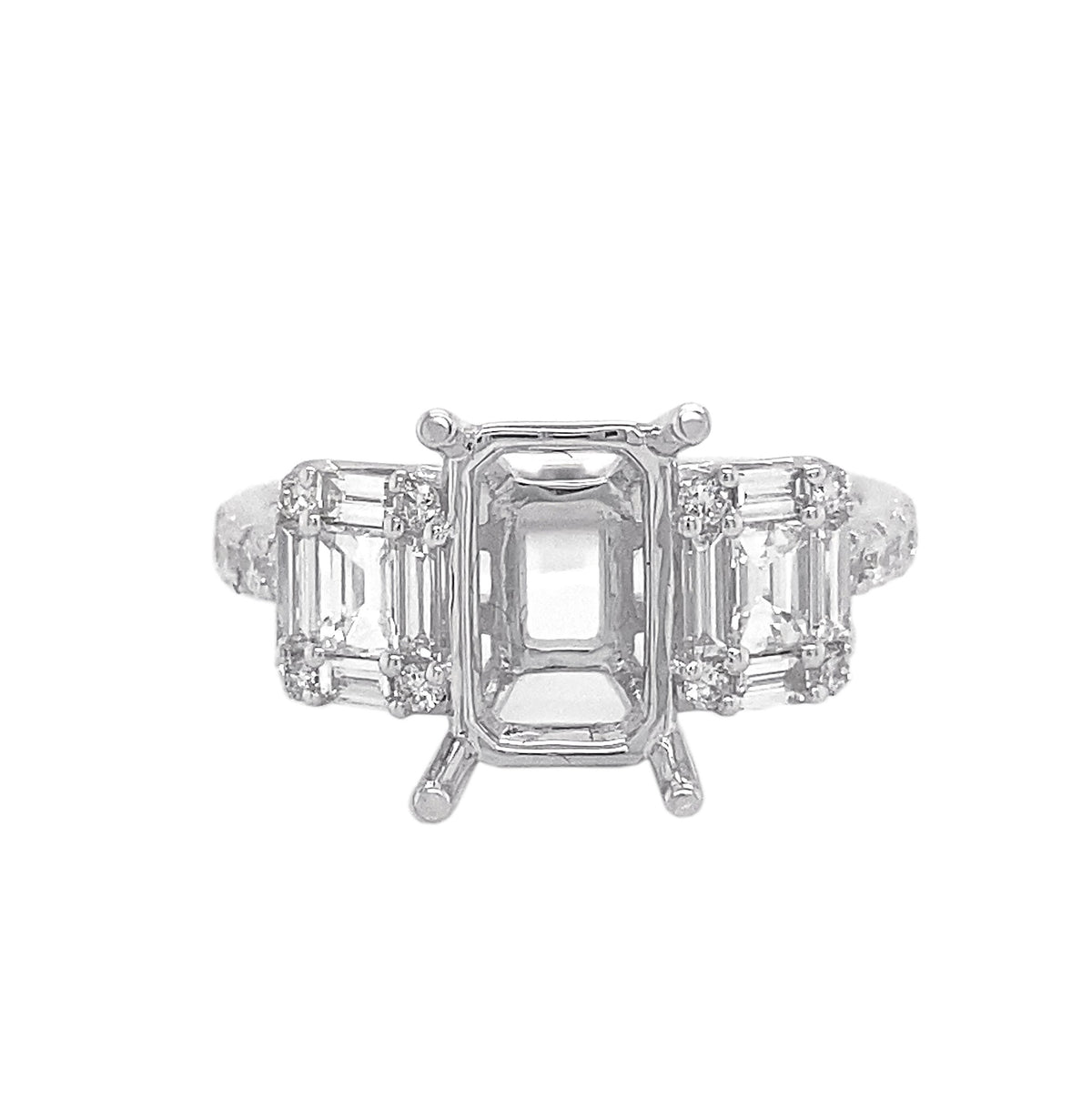 18kt white gold micro prong and invisible set baguette and round brilliant diamond multi-cluster semi-mount for emerald.