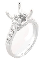 18kt white gold micro prong set round brilliant diamond semi mount with micro prong set round brilliant diamonds in gallery