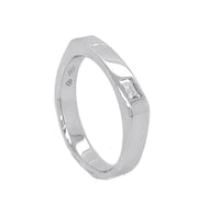 18kt white gold bezel set baguette cut diamond single stone flat band.