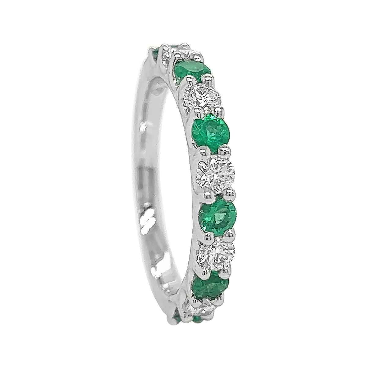 18kt White Gold Diamond and Emerald Band
