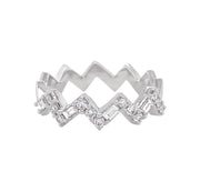 18kt white gold prong set baguette and round brilliant diamond zig-zag band.