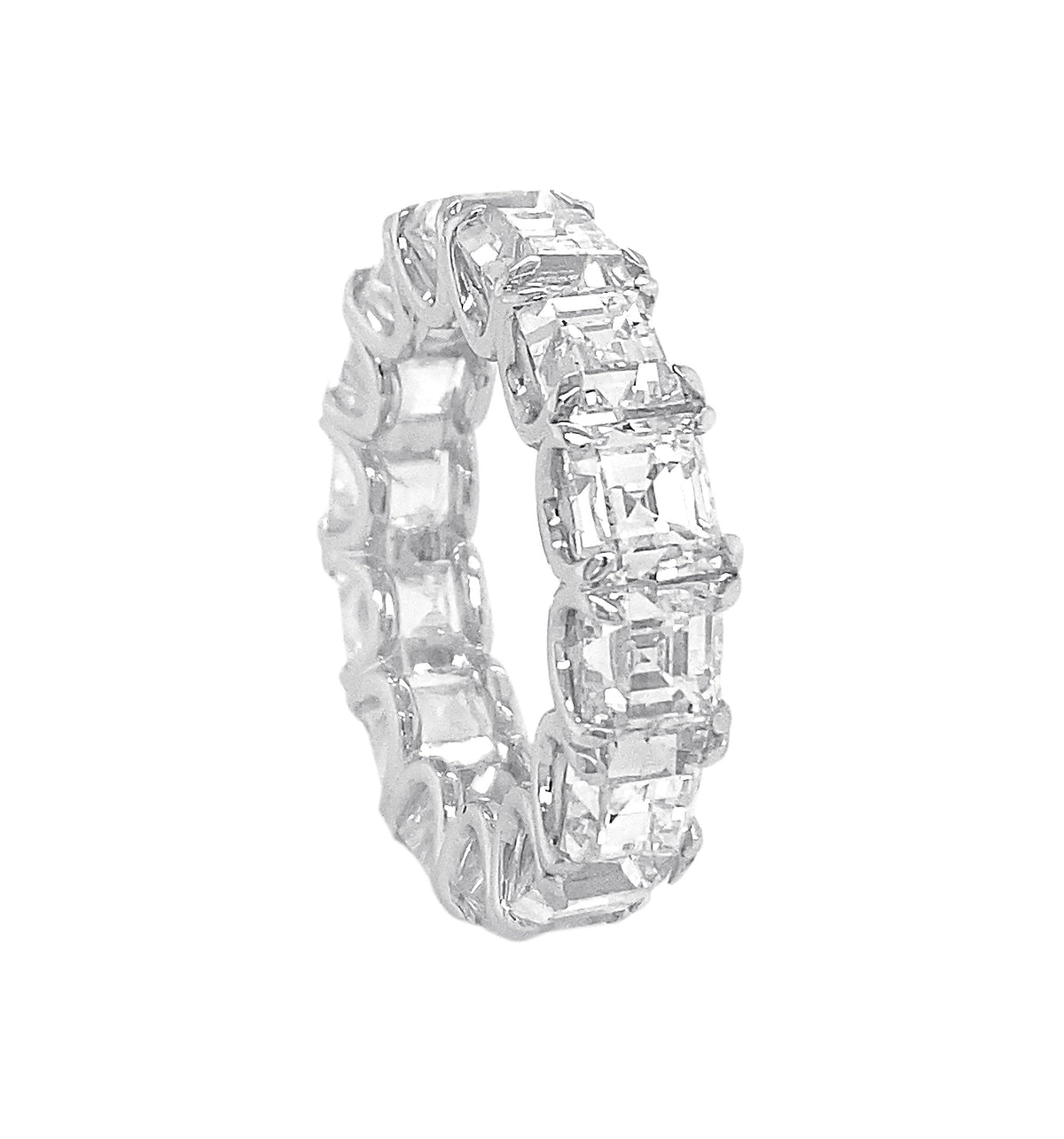 18kt white gold 4 claw prong set asscher cut diamond eternity band.