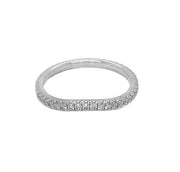 18kt white gold micro prong set round brilliant diamond cruve band.