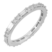 18kt white gold prong set baguette and round brilliant diamond eternity band.