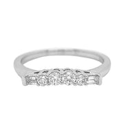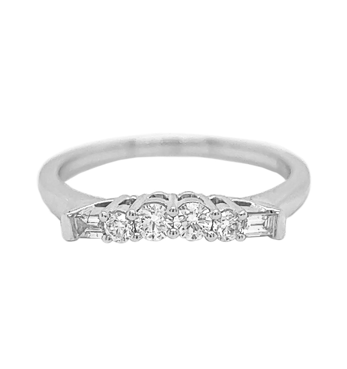 18kt white gold channel set baguette and mutual prong set round brilliant diamond band.
