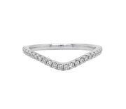 18kt white gold micro prong set round brilliant diamond curve band.