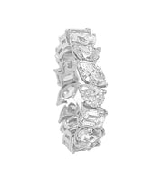 18kt white gold prong set marquise, pear, oval and emerald cut diamond eternity band.