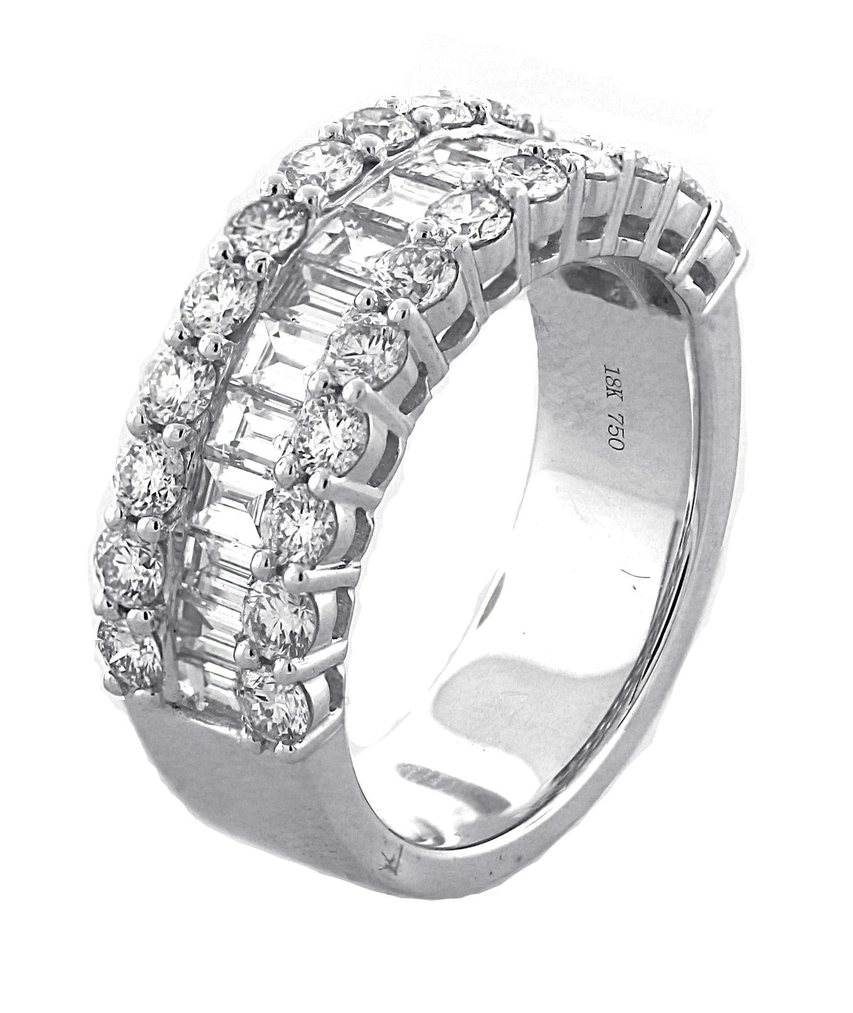 18kt white gold channel set baguette diamond and mutual prong set round brilliant diamond band.(half way diamond )