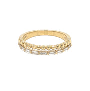 18kt yellow gold single prong set baguette diamond and beaded 2-row band.