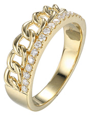 18kt yellow gold micro prong set round brilliant diamond and link 2-row band.