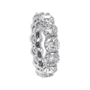 Platinum mutual prong set laboratory grown round brilliant diamond eternity band.