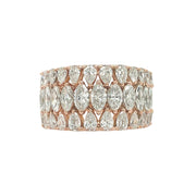 14kt rose gold prong set marquise and pear shaped diamond wide band.