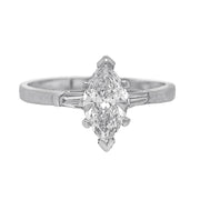 14kt White gold marquise diamond set into center with side baguette diamonds