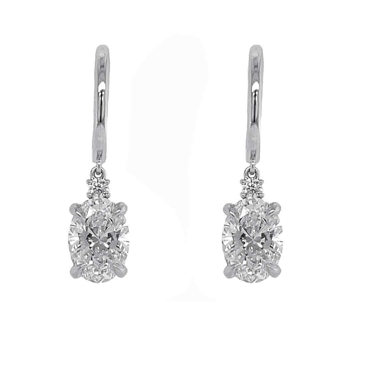 18kt white gold micro prong set round brilliant diamond dangling earring mounting for oval stone.