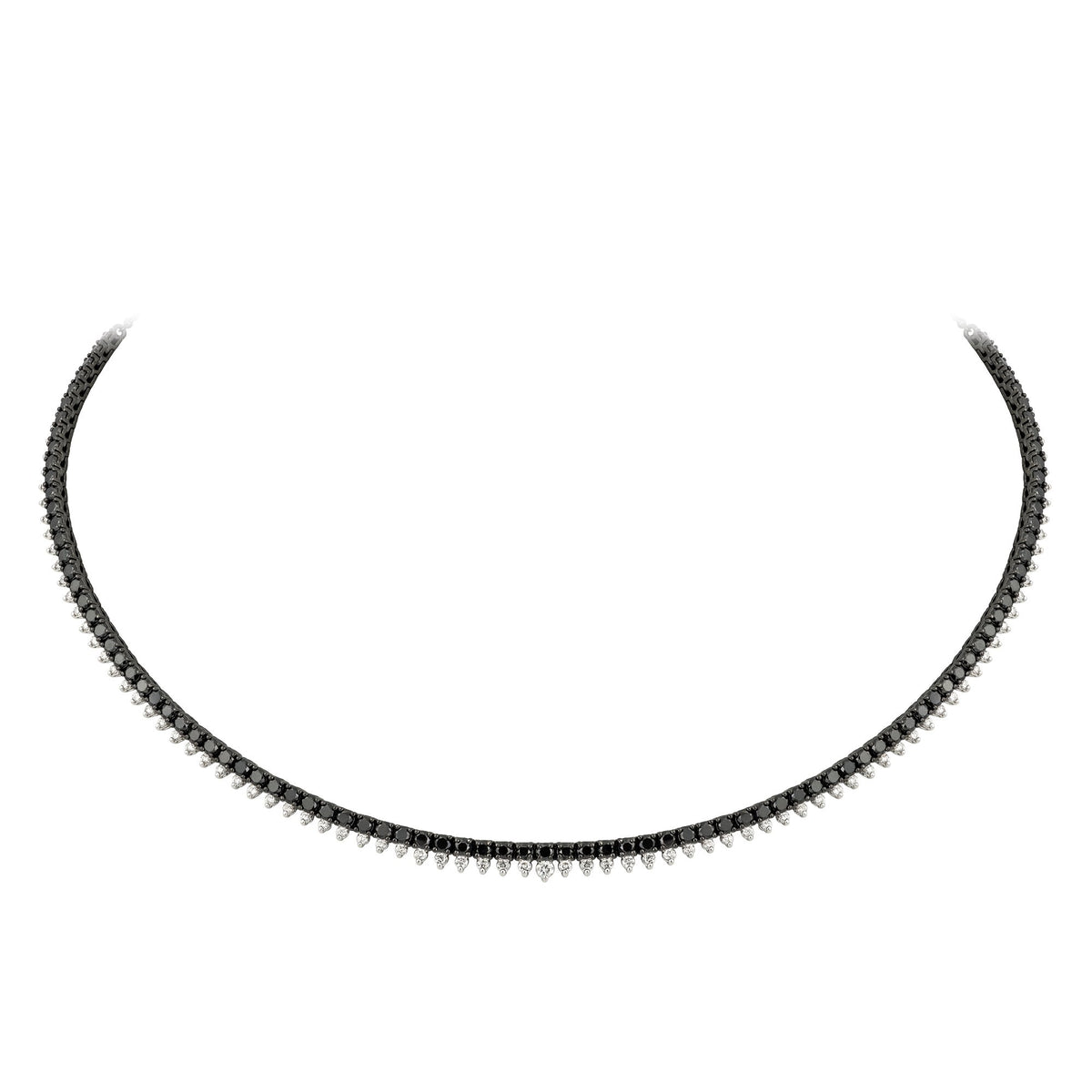 18kt White Gold Diamond and Black Diamond Tennis Necklace