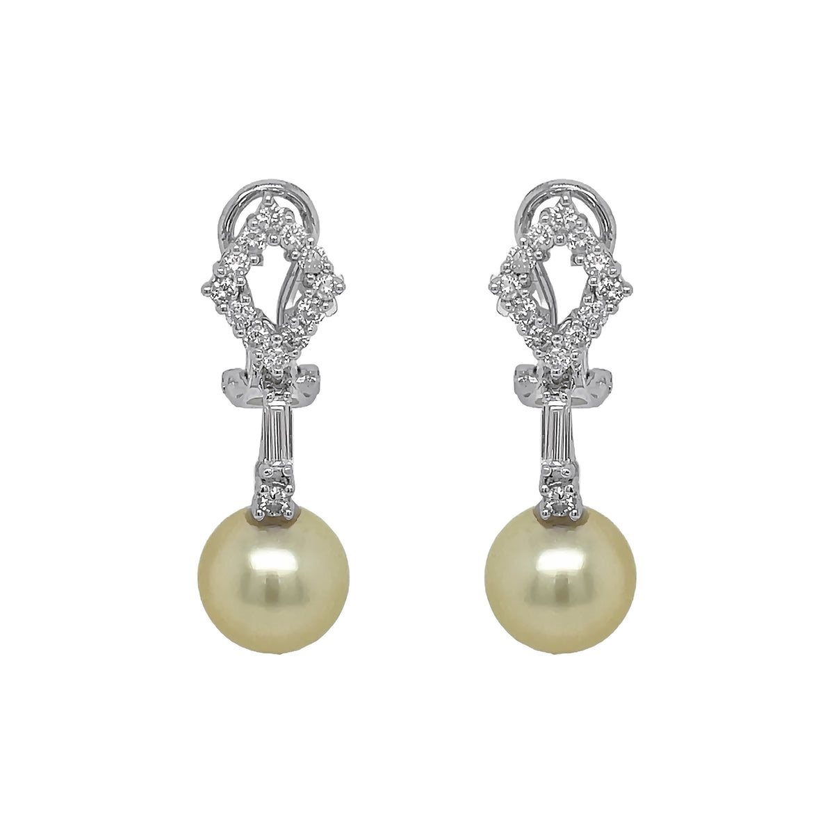 18kt White Gold Diamond and Pearl Dangling Earrings