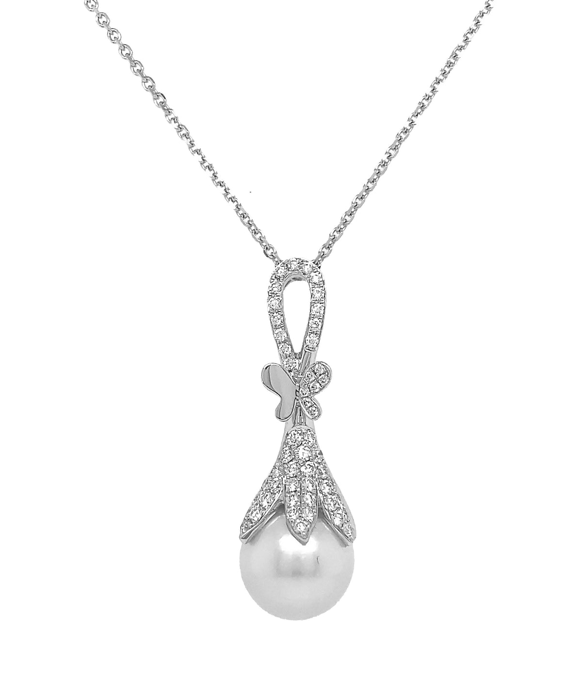 18kt White Gold Diamond and Pearl Pendant