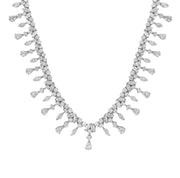 18kt white gold prong set marquise, pear and round brilliant diamond dangling multi-cluster necklace.