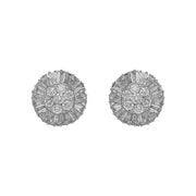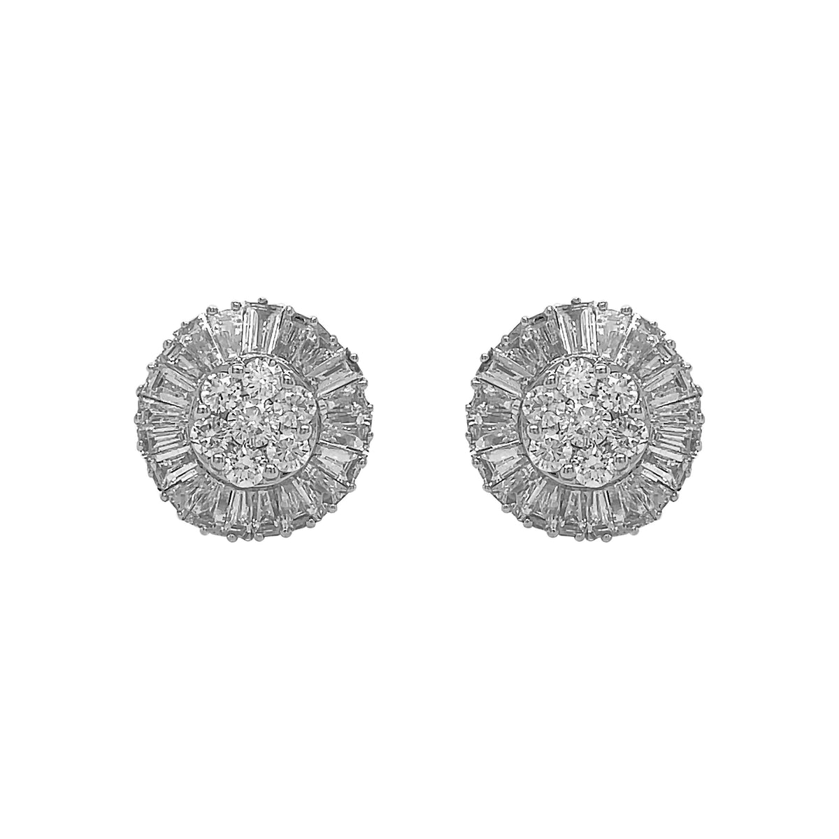 18kt white gold invisible set baguette and round brilliant diamond cluster earring.