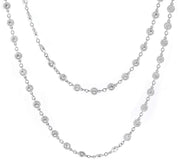 18kt white gold bezel set round brilliant diamond, diamonds-by-the-inch necklace with milgrain finish.