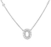 18kt white gold mutual prong and bezel set round brilliant diamond pendant mounting for oval stone.