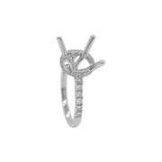 18kt white gold micro prong set round brilliant diamond under-halo semi-mount with diamonds on the gallery and shank.