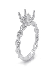 18kt white gold micro prong set round brilliant diamond semi-mount with twisted shank.