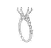 18kt white gold 6 prong martini cup semi-mount with micro prong set round brilliant diamond on gallery and shank.