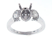18kt white gold micro prong set round brilliant diamond semi mount with 2 oval diamonds on the sides