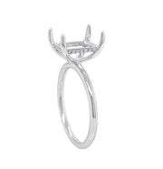 18kt white gold 4 prong emerald semi-mount with micro prong set round brilliant diamond on the gallery.