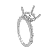 18kt white gold prong set marquise and round brilliant diamond semi-mount for round stone.