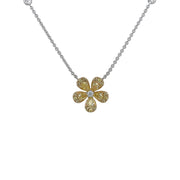 18kt white and yellow gold micro prong set round brilliant diamond and yellow diamond flower pendant.