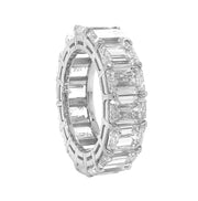 Platinum mutual prong set GIA certified laser inscripted emerald cut diamond eternity band.