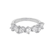 Platinum claw prong set emerald, pear and heart shaped diamond 7-stone band.