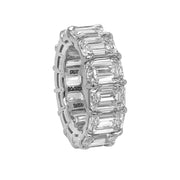 Platinum mutual prong set laboratory grown emerald cut diamond eternity band.