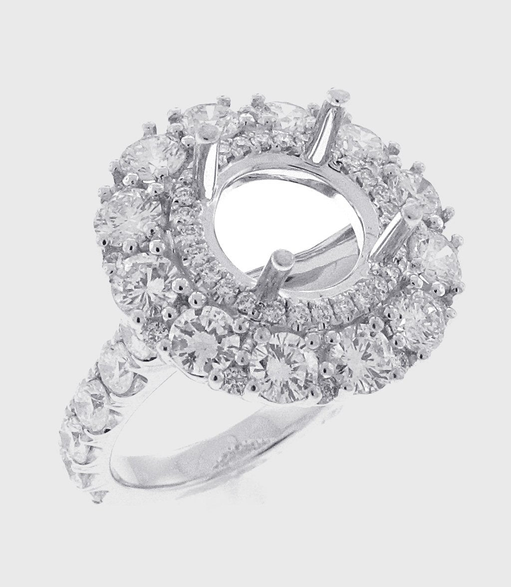 Platinum prong set round brilliant diamond double round halo semi mount