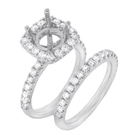 Platinum micro prong set round brilliant diamond cushion halo setting for round stone with matching band