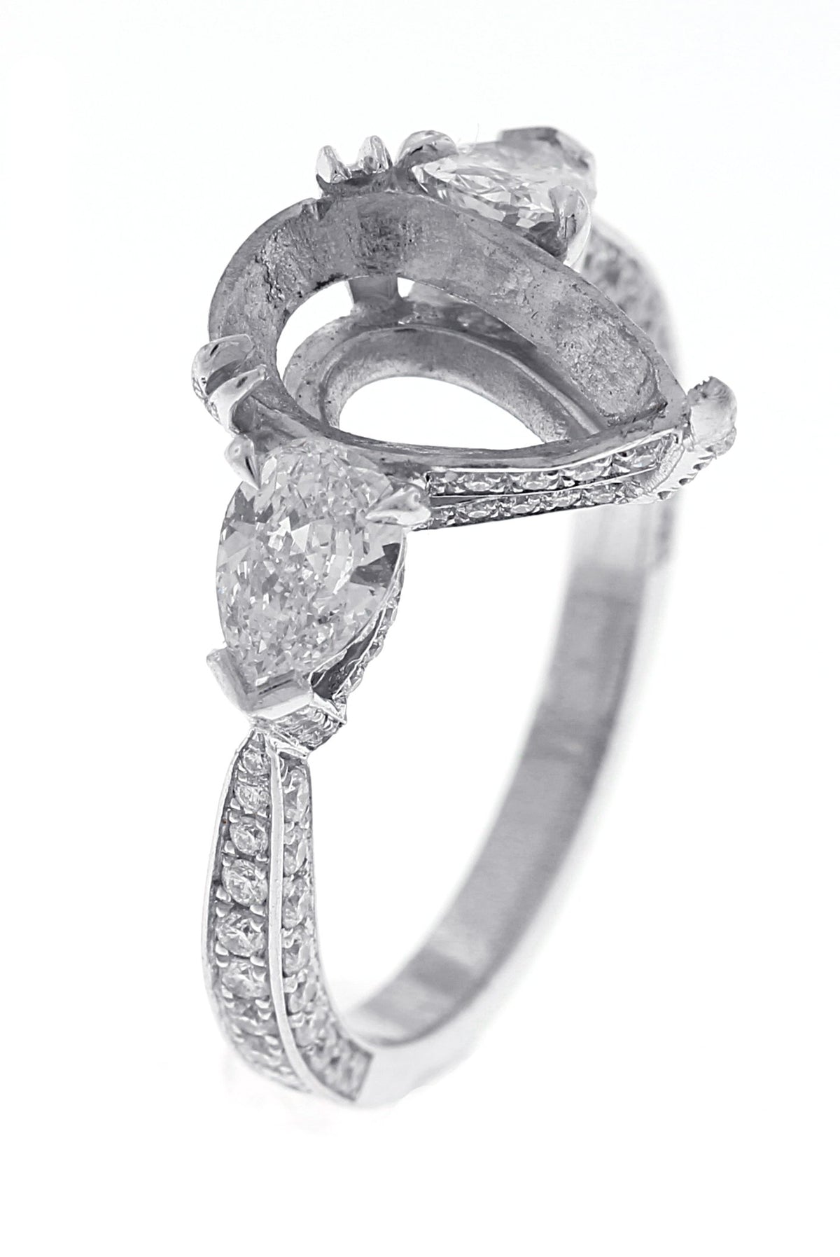 Platinum handmade micro pave set round brilliant diamond and prong set pear shape diamond setting for pear shape stone.